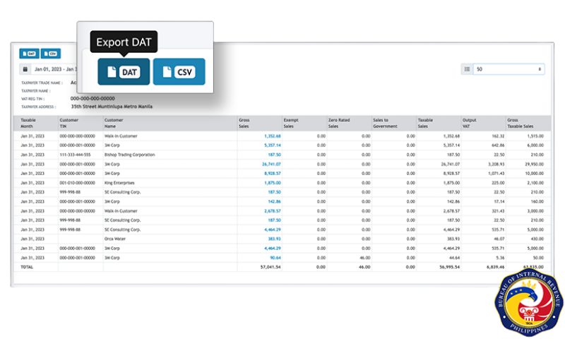 Export SLS, SLP, SAWT, and QAP in DAT format for easy e-submission.