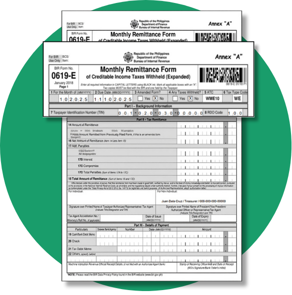 – 0619E(Monthly Remittance Return of Expanded Creditable Tax Withheld).